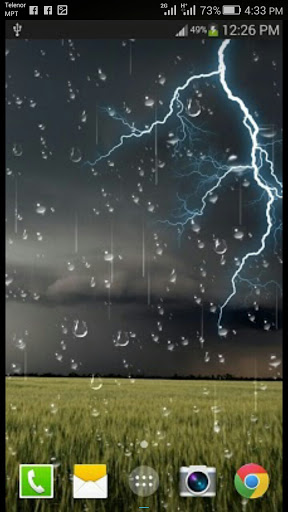 This is a free application. For this wallpaper, you can enjoy the amazing thunderstorm display in your phone screen. And it would also display the rain. And when you click the phone screen, you can notice that the thunderstorm would appear. And amazing that you can find the app would be play the voice of the thunderstorm and the sound of rain. And you would find the rain would drop on your phone screen. How a true live wallpaper. Hope you will like it. Thanks.